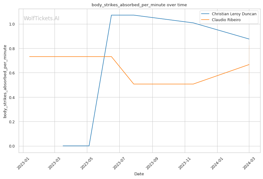 | Leg kicks Absorbed per Minute | 1.675 | 0.671 | 0.513 | |