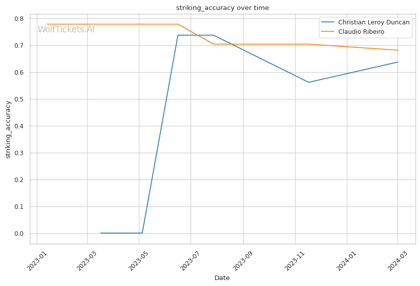 Past predictions have shown mixed accuracy for Duncan and a robust track for Ribeiro, indicating a potential risk relying solely on the model's prediction. However, the model's success in predicting outcomes based on striking metrics and fight dynamics provides valuable insight into this matchup.