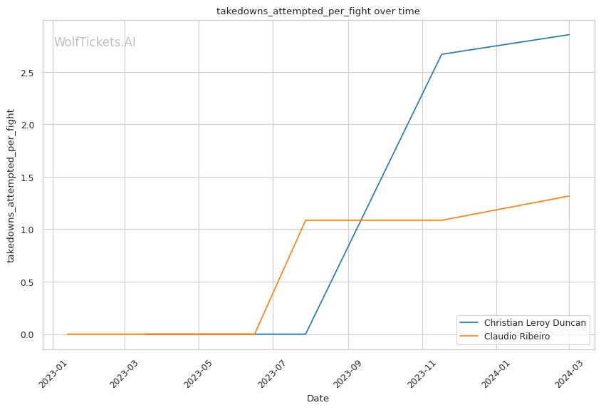 WolfTicketsAI has accurately predicted Ribeiro's outcomes in recent bouts, indicating a robust analysis of his fighting style and performance trends. Despite this, his reach disadvantage (2 inches shorter than Duncan) and recent vulnerability to KO/TKO losses may impede his effectiveness against an opponent with Duncan's attributes.