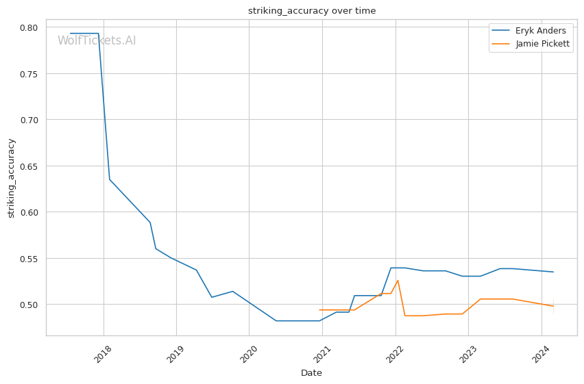 The matchup between Eryk Anders and Jamie Pickett is a study in contrasts, with Anders' power and aggressive style pitted against Pickett's longer reach and potential striking advantages. Both fighters have shown vulnerabilities to specific strategies, with Anders susceptible to sustained pressure and grappling, while Pickett struggles against aggressive strikers and ground specialists.