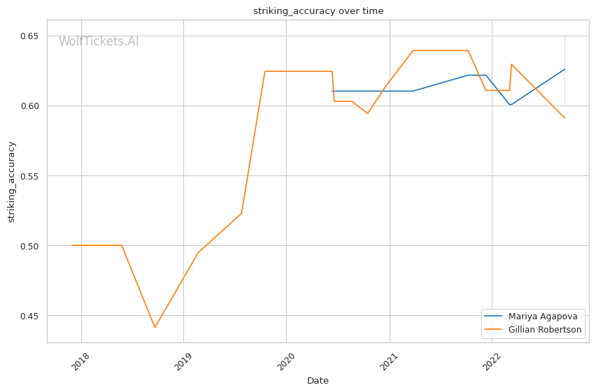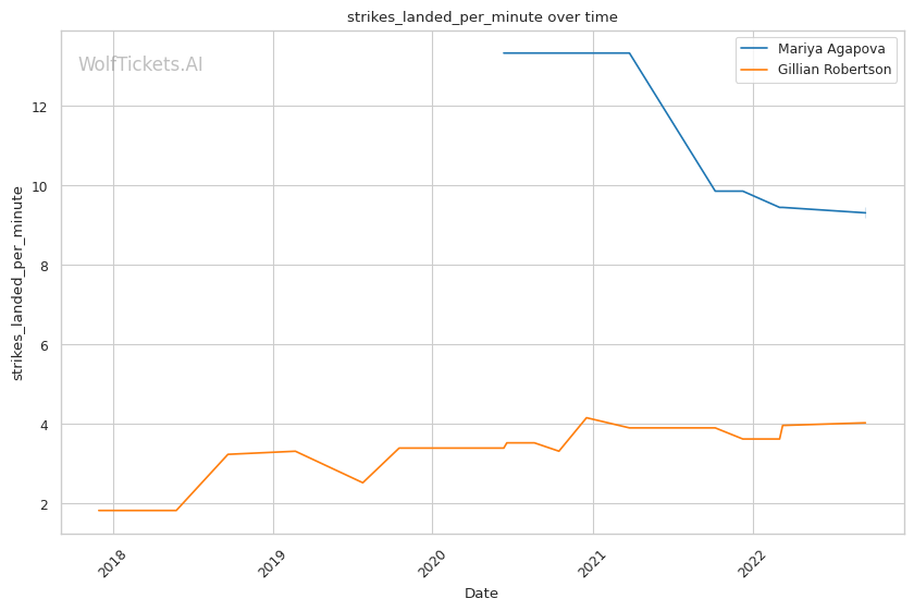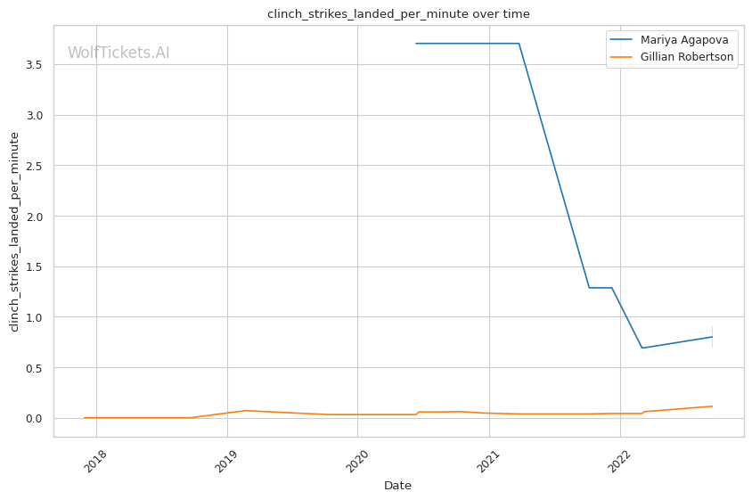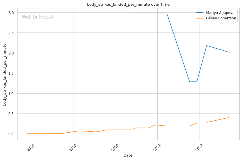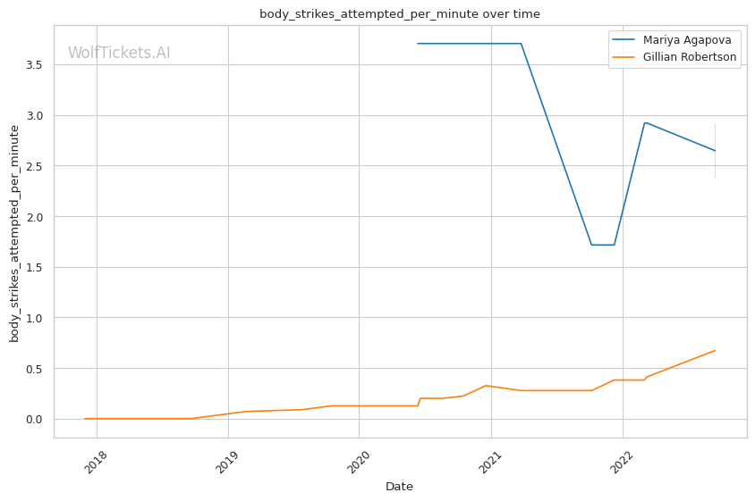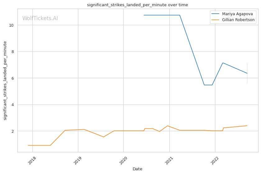 | Stat | Mariya Agapova | Gillian Robertson | Weight Class Average | |