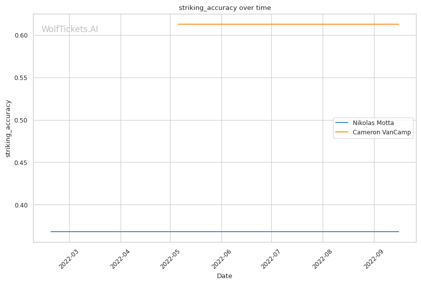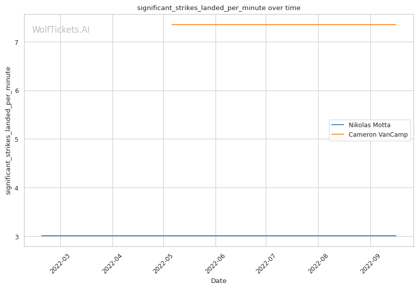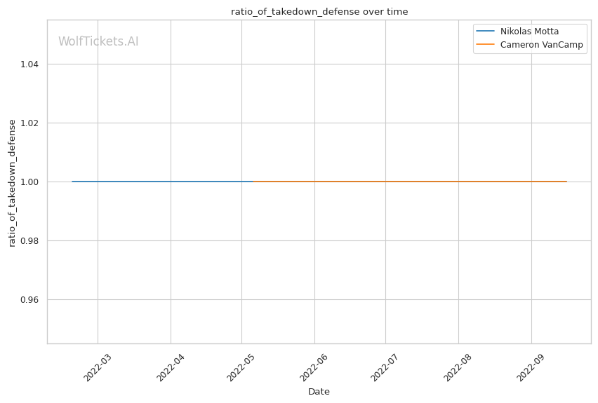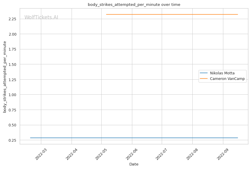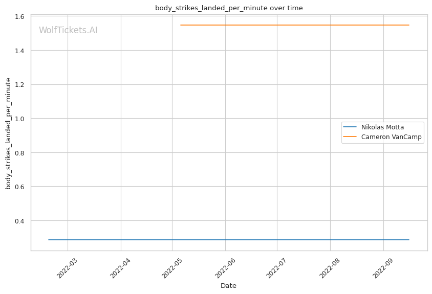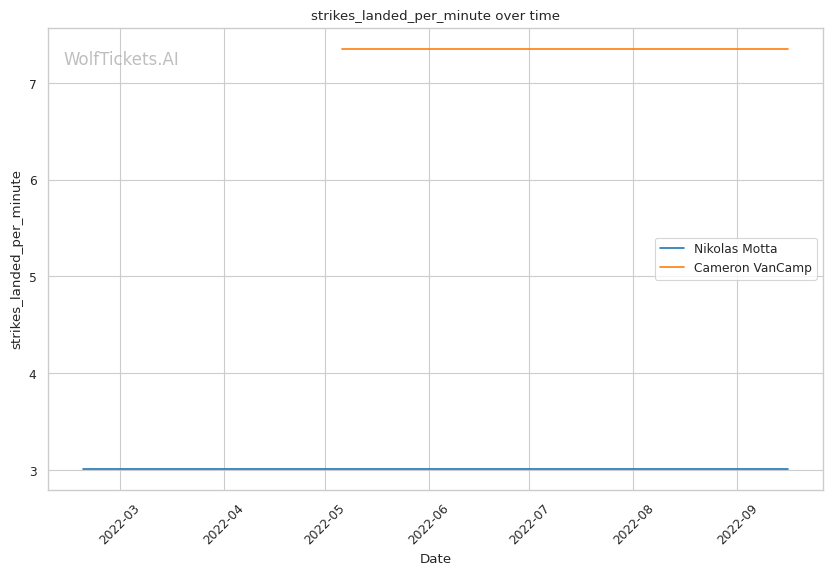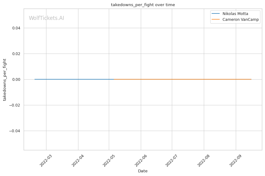 | Stat | Nikolas Motta | Cameron VanCamp | Weight Class Average | |