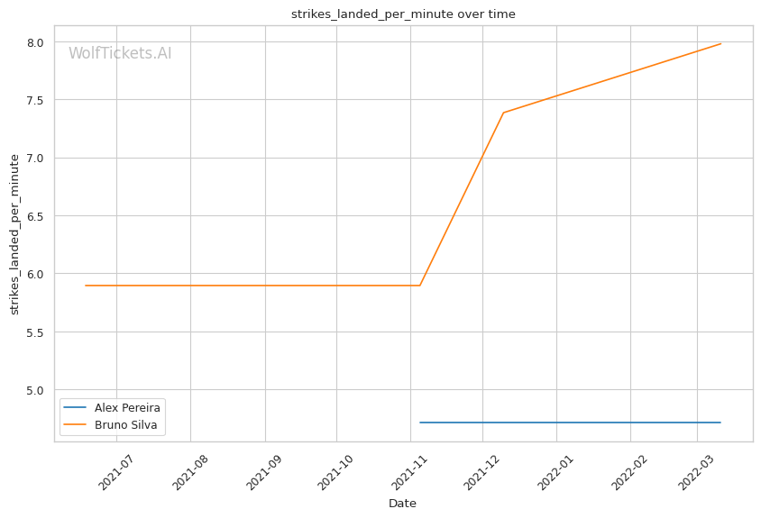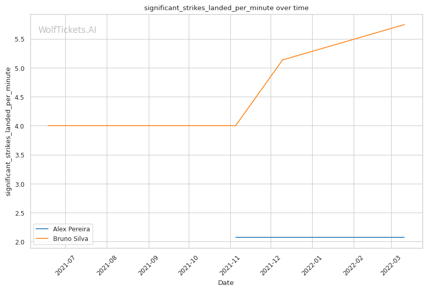 | Stat | Alex Pereira | Bruno Silva | Weight Class Average | |