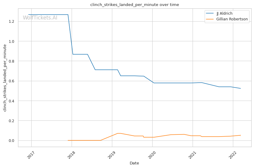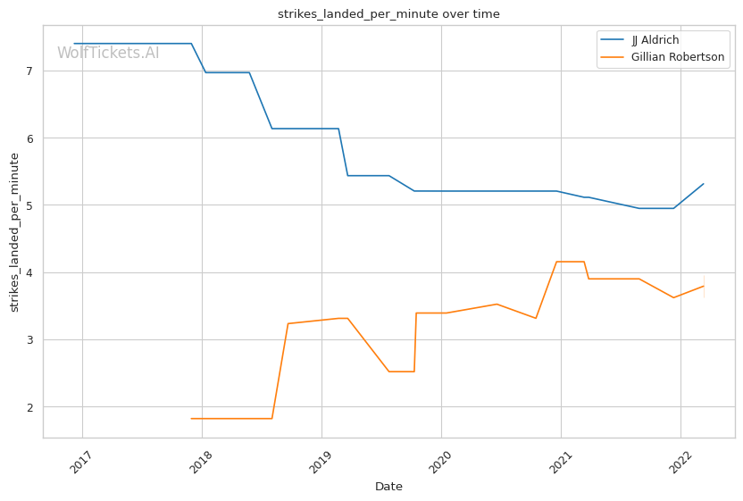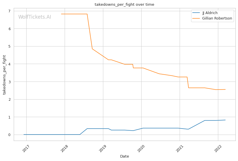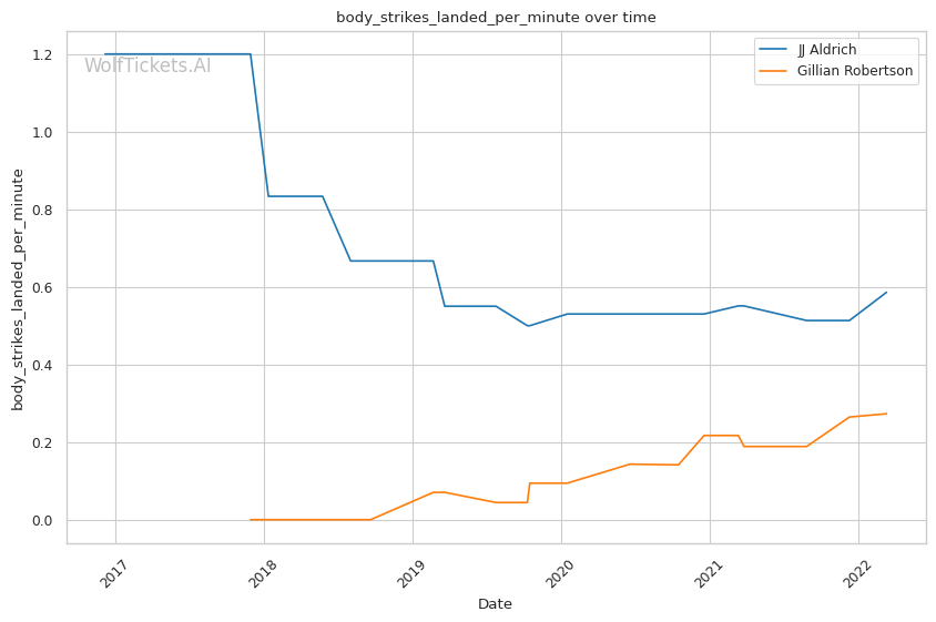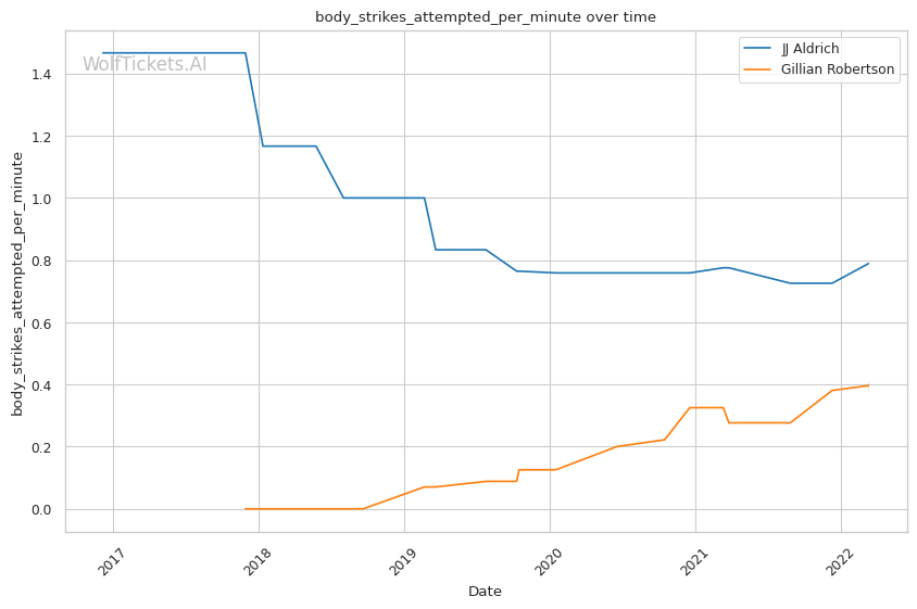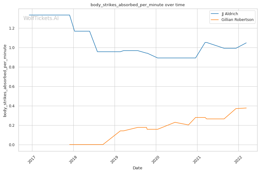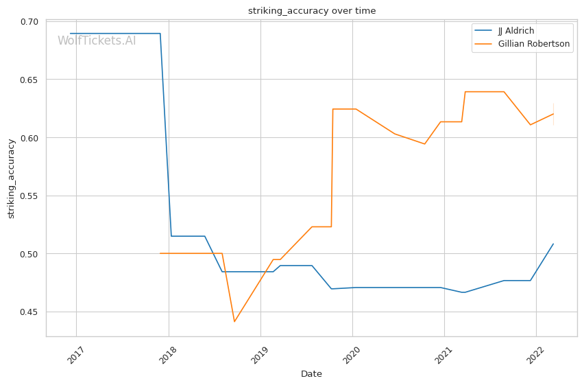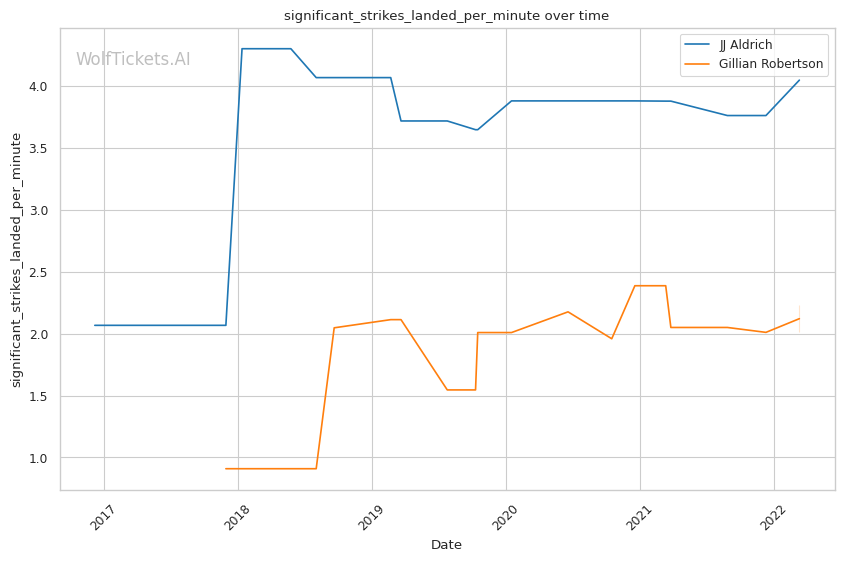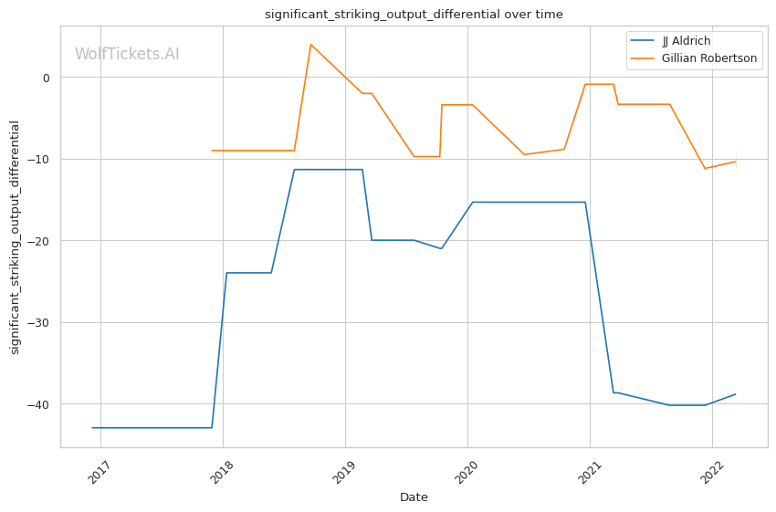 | Stat | JJ Aldrich | Gillian Robertson | Weight Class Average | |