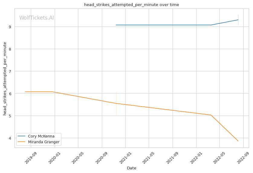 | Head Strikes Attempted per Minute | 9.533 | 3.856 | 6.283 | |
