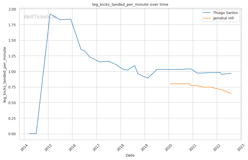 | Leg kicks Attempted per Minute | 1.387 | 0.770 | 0.661 | |