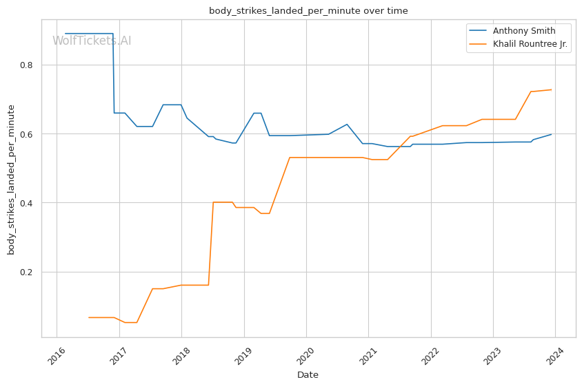 | Body Strikes Landed per Minute | 0.597 | 0.732 | 0.803 | |