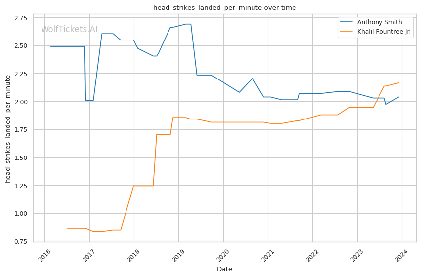 | Head Strikes Landed per Minute | 2.039 | 2.194 | 2.590 | |