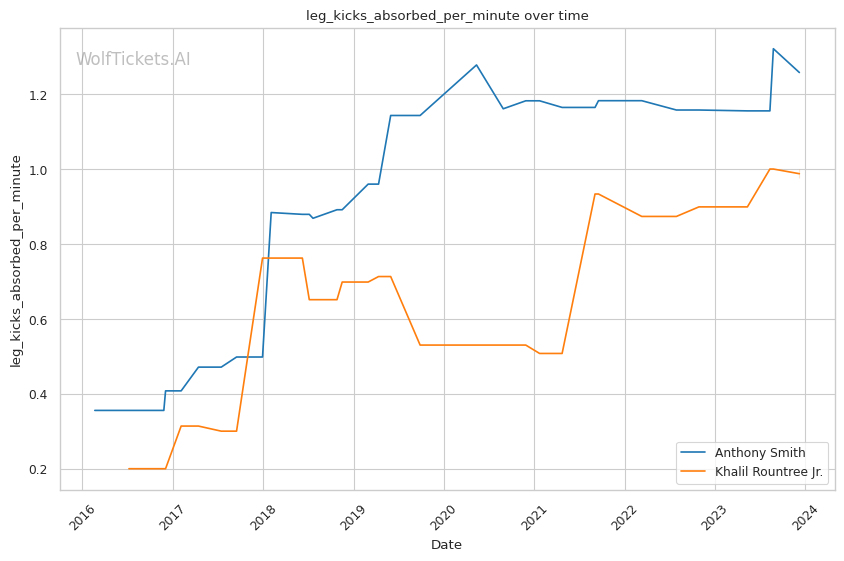| Leg kicks Absorbed per Minute | 1.258 | 0.975 | 0.569 | |
