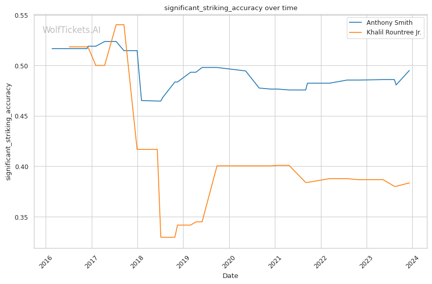 | Stat | Anthony Smith | Khalil Rountree Jr. | Weight Class Average | |
