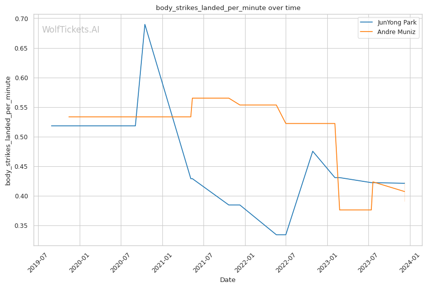 | Body Strikes Landed per Minute | 0.421 | 0.391 | 0.860 | |
