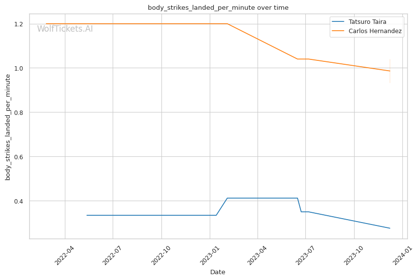 | Stat | Tatsuro Taira | Carlos Hernandez | Weight Class Average | |