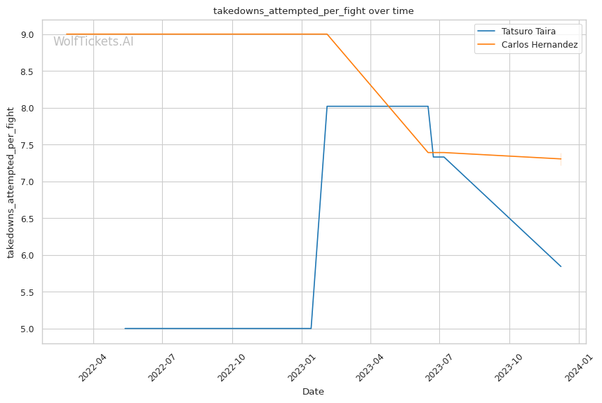 | Takedowns Attempted per Fight | 5.842 | 7.218 | 3.952 | |