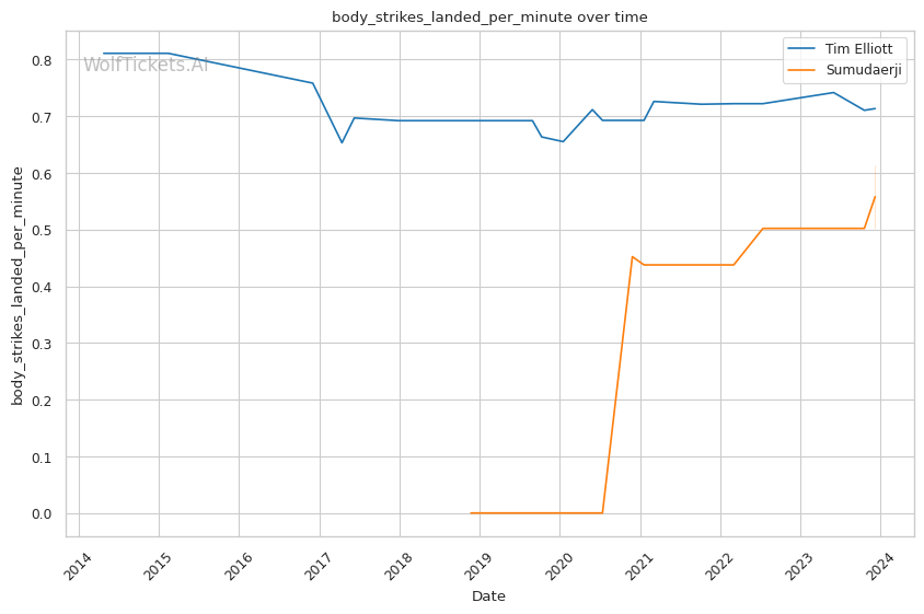 | Body Strikes Landed per Minute | 0.713 | 0.614 | 0.840 | |