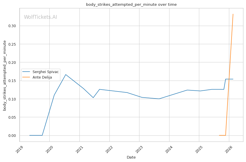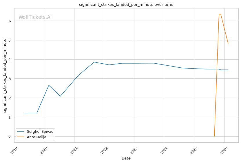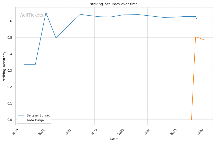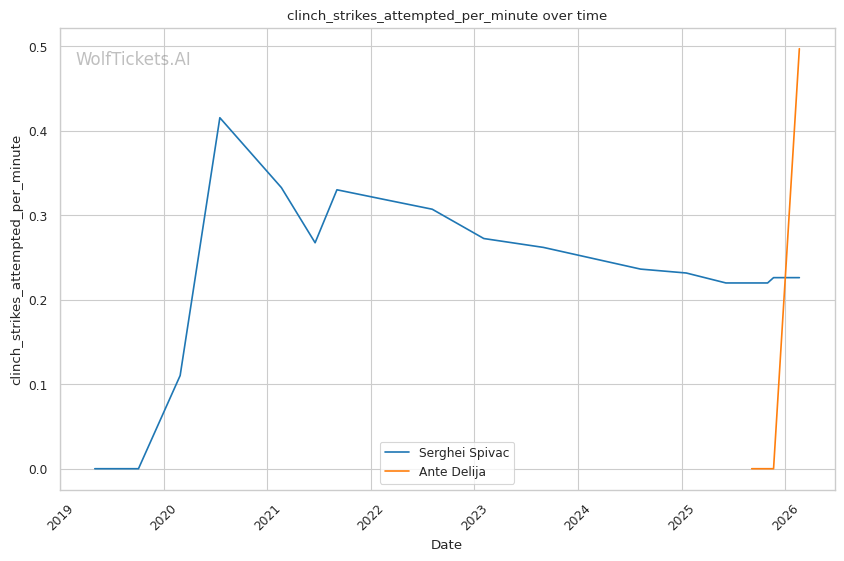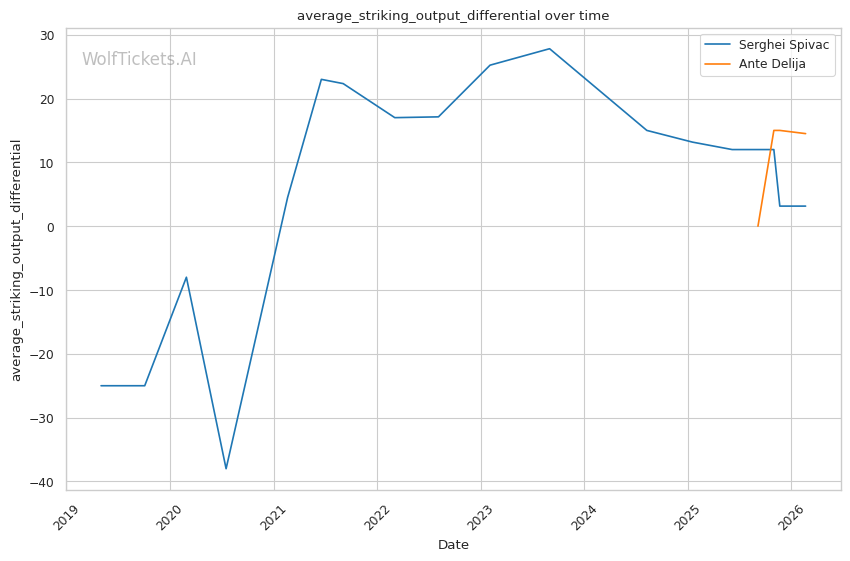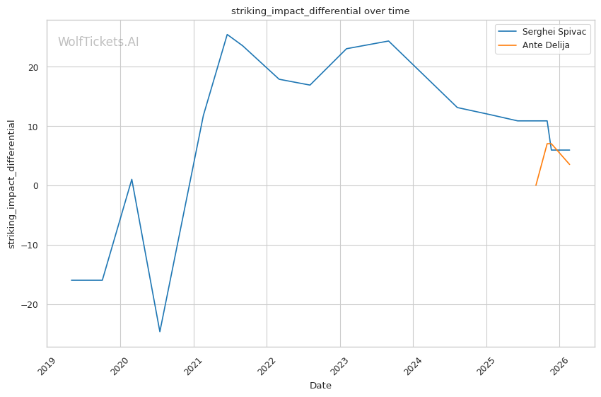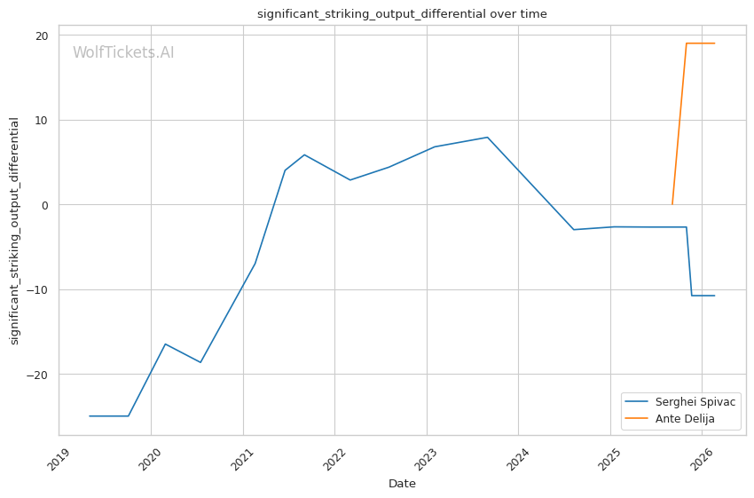 Significant Striking Output Differential (-1.0): Delija's 19.0 significant striking output differential versus Spivac's -10.79 shows the Croatian lands more than he absorbs on the feet. This is Spivac's primary risk factor.