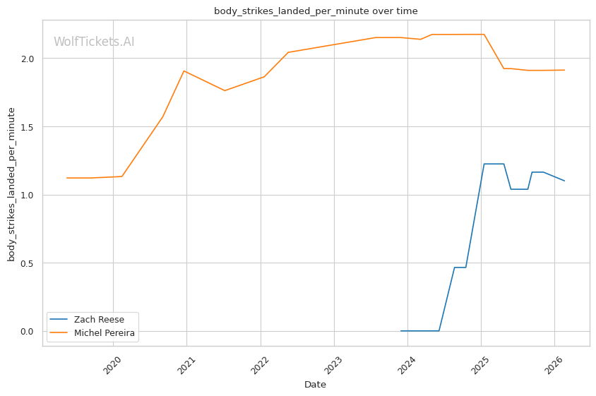 | Body Strikes Landed per Minute | 1.101 | 1.915 | 0.756 | |