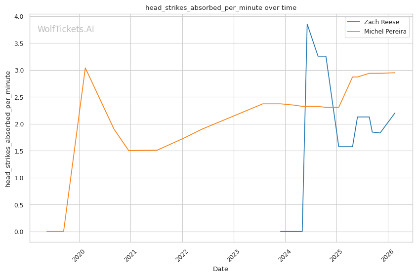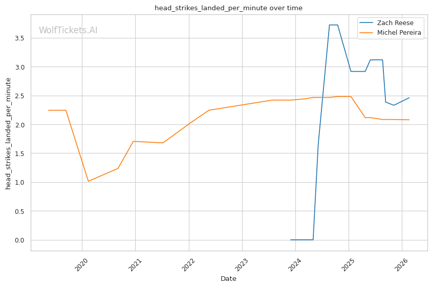 If this fight goes deep, Reese likely has the advantage. Pereira was thoroughly dominated in the later rounds against both Hernandez and Magomedov. His striking defense percentage drops in recent fights (47.85%), and his takedown defense becomes even more porous when fatigued.