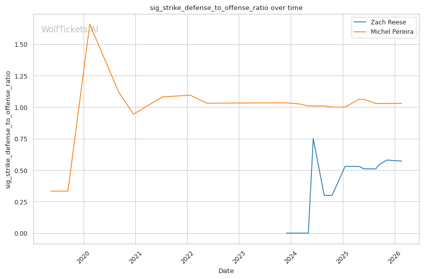 | Significant Striking Defense to Offense Ratio | 57.14% | 103.06% | 100.09% | |