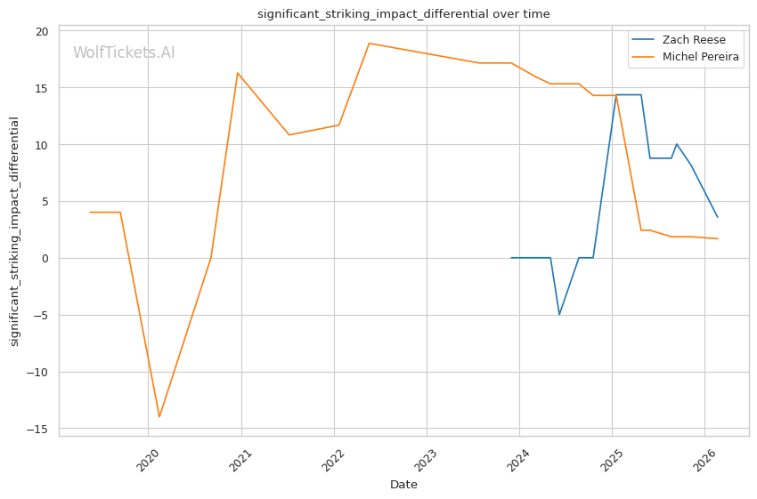 Significant Striking Impact Differential and Output Differential both increased the score, reflecting Reese's ability to outlast opponents in striking exchanges.