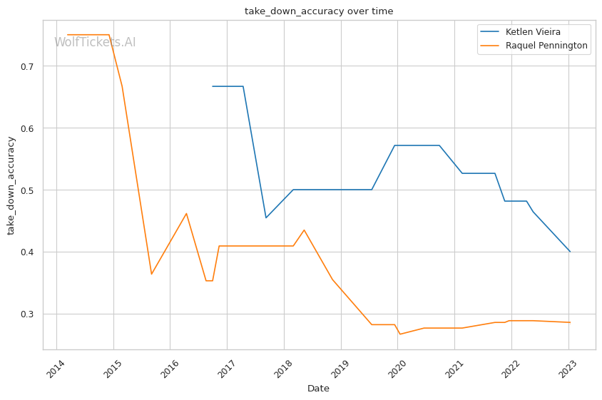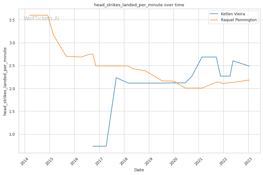 | Stat | Ketlen Vieira | Raquel Pennington | Weight Class Average | |
