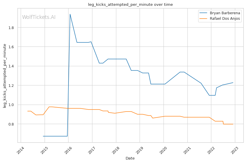 | Leg kicks Attempted per Minute | 1.227 | 0.796 | 0.790 | |