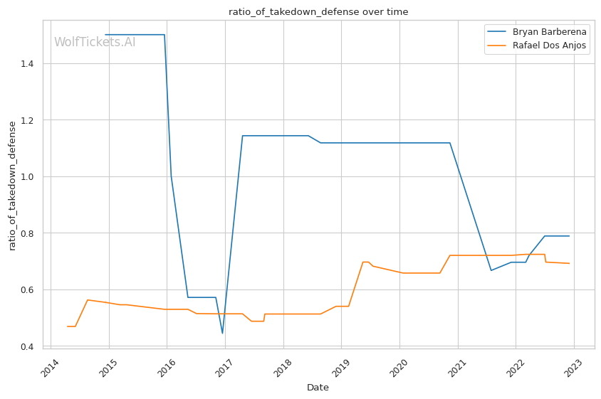 | Takedowns Attempted per Fight | 0.649 | 5.639 | 3.696 | |
