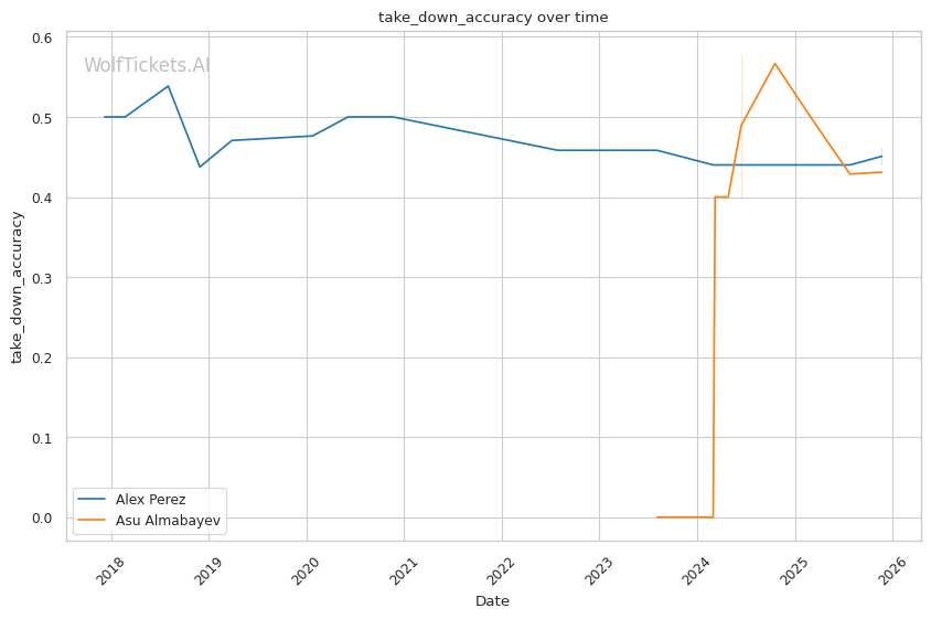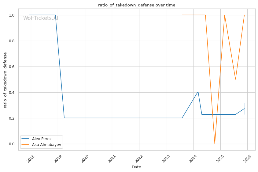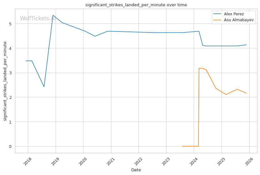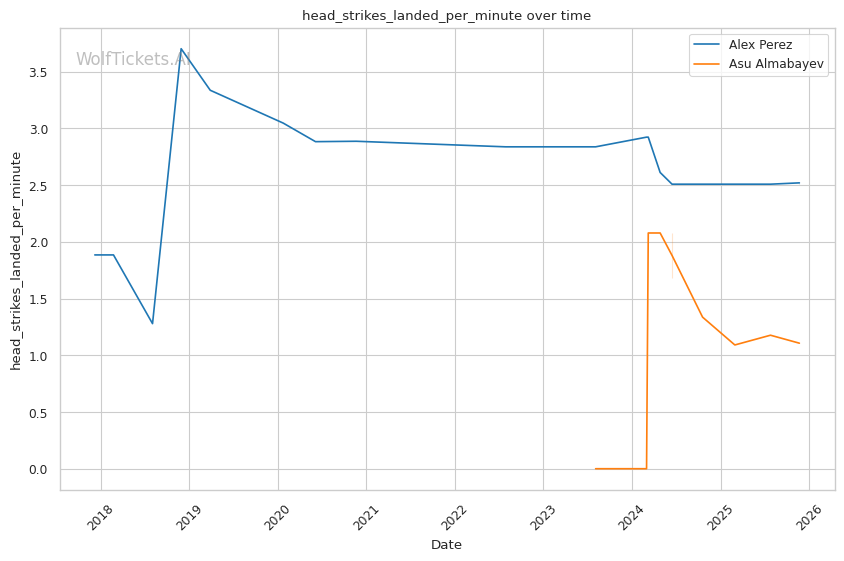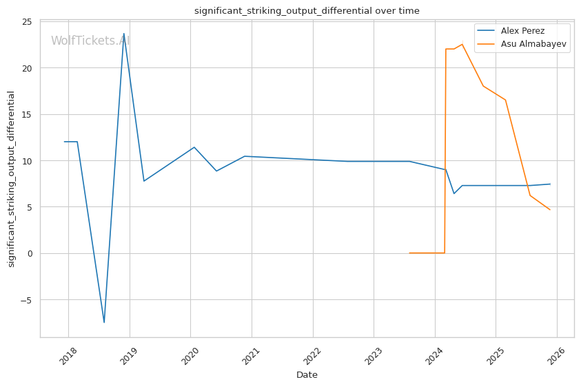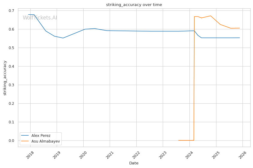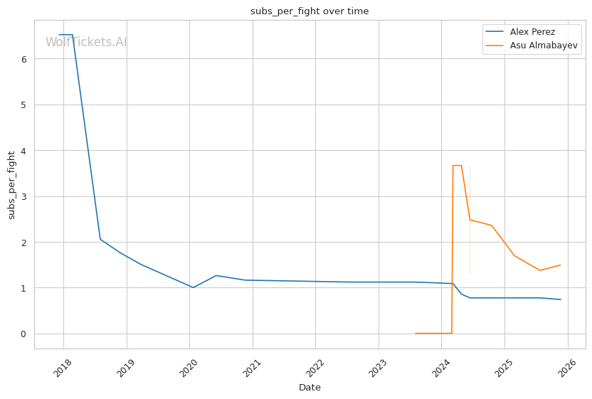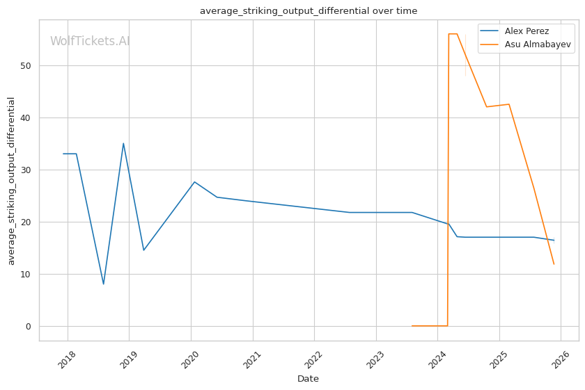 This is a three-round fight, but if it goes the distance, Perez's cardio concerns become relevant. His run-and-swing pressure against Taira was inefficient and left him exposed. Almabayev's grappling-heavy approach is cardio-intensive, but his recent performances (five straight decisions) suggest he can maintain pace. Perez's striking output declined in Round 3 against Mokaev, allowing Mokaev to find success on the feet despite being exhausted. If Almabayev can maintain top control into the third round, Perez's defensive reserves will be depleted.