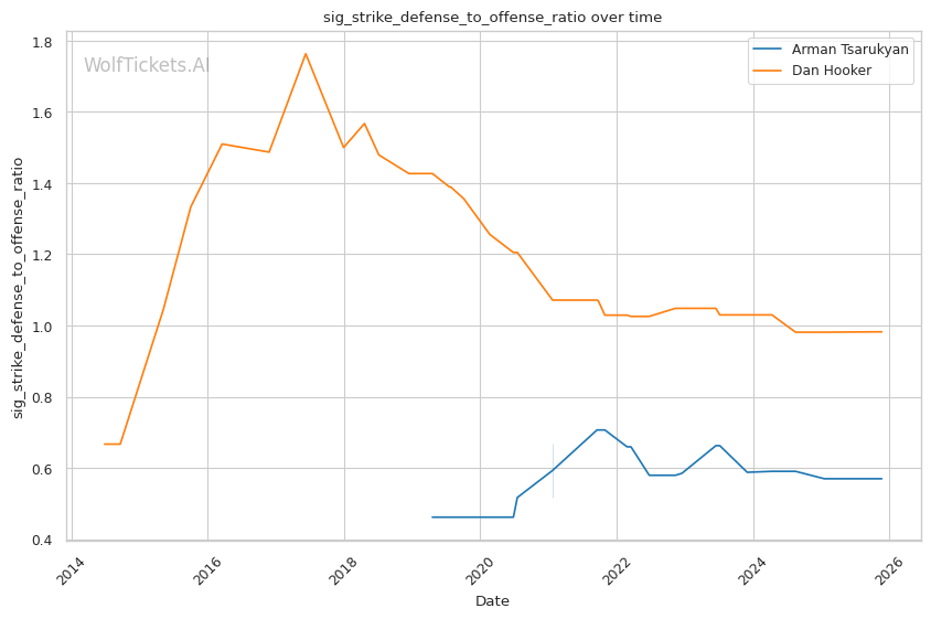 | Significant Striking Defense to Offense Ratio | 56.95% | 98.23% | 102.52% | |