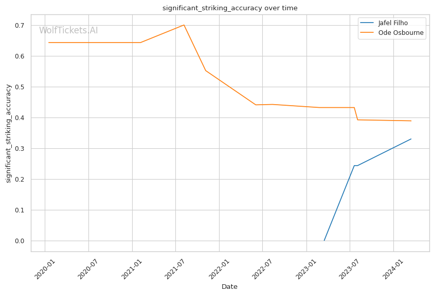 The limited prediction history for both fighters raises questions about the model's reliability in this matchup. Without past predictions for Filho and mixed results for Osbourne (2 correct, 1 incorrect), it's challenging to derive high confidence in the model's projection. This fight could serve as an important test case to refine future predictions for these two talents.