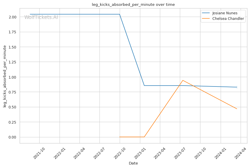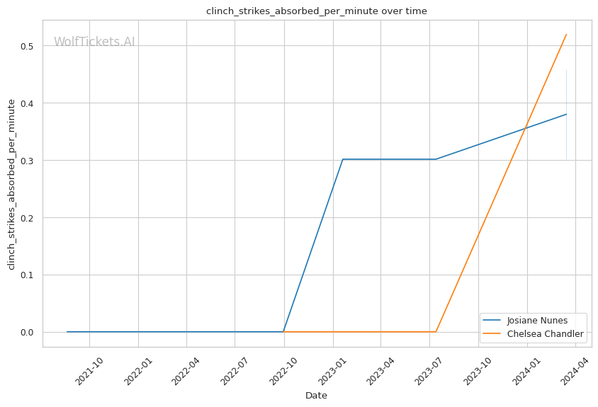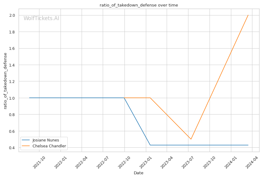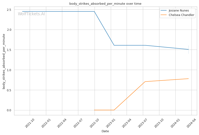 On the striking front, Chandler lands 3.12 significant strikes per minute but absorbs 3.11 per minute. Her significant striking defense percentage is 42.7%, which could be a liability against a powerful striker like Nunes.