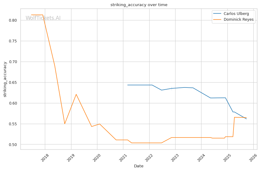 WolfTicketsAI has been exceptionally accurate with Ulberg, correctly predicting his victories in all eight of his recent fights, including challenging matchups against Jan Blachowicz and Volkan Oezdemir. However, the model has struggled with Reyes, incorrectly predicting him to lose against Nikita Krylov and Dustin Jacoby when he actually won by knockout. This mixed track record with Reyes suggests some uncertainty, but Ulberg's perfect prediction record provides strong confidence in the pick.