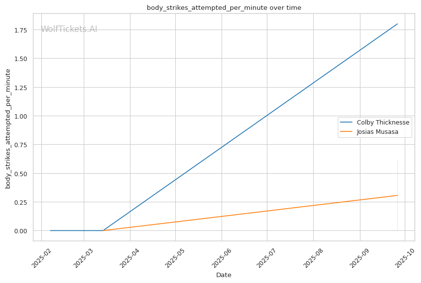 | Body Strikes Attempted per Minute | 1.800 | 0.612 | 1.114 | |