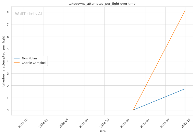 • Takedown threat disparity: Nolan's improved takedown defense (73.33% recent) vs Campbell's declining defense (97.78% recent but against limited attempts)