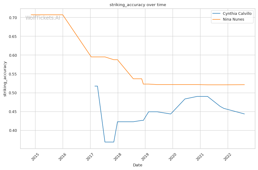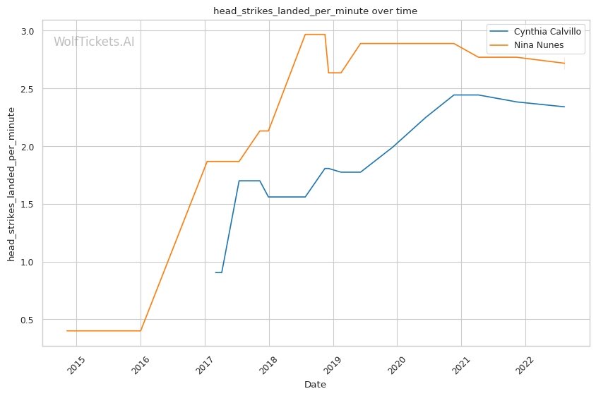| Stat | Cynthia Calvillo | Nina Nunes | Weight Class Average | |