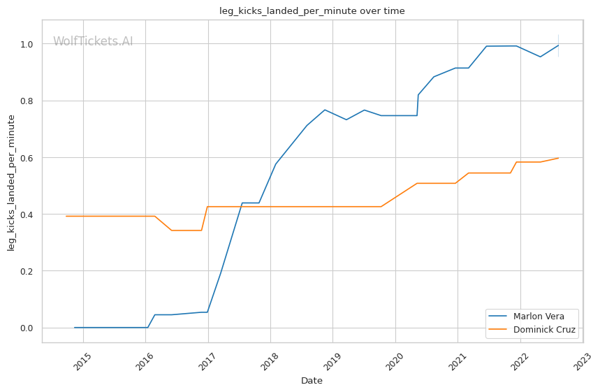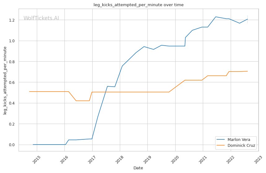 | Leg kicks Attempted per Minute | 1.246 | 0.705 | 0.840 | |