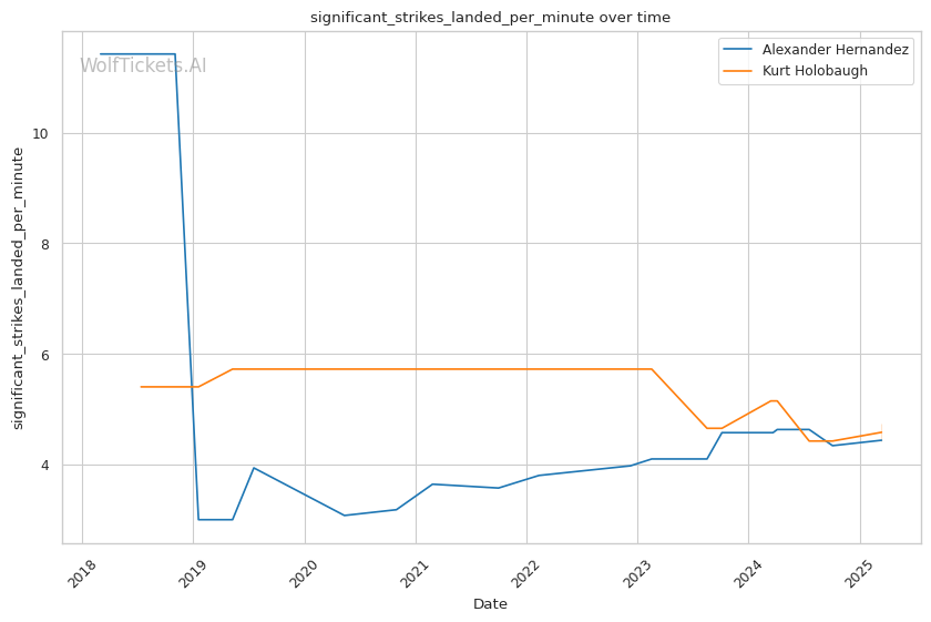 Expect Alexander Hernandez to win this lightweight clash by capitalizing on his superior striking defense and first-round explosiveness. The odds, striking metrics, and physical advantages all point to Hernandez maintaining distance with his jab and landing more significant strikes. While Holobaugh presents submission threats if the fight goes to the ground, Hernandez's technical striking and defensive awareness should earn him the victory as WolfTicketsAI predicts.