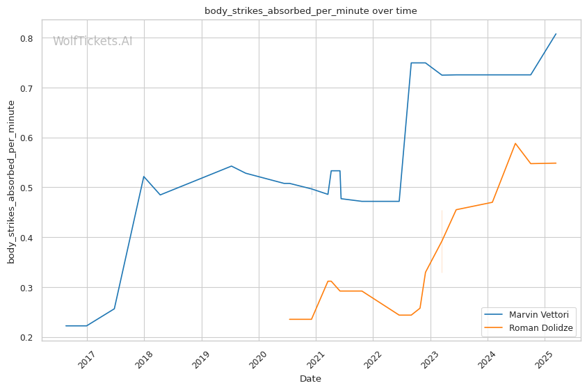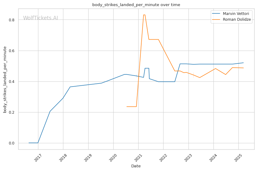 | Body Strikes Landed per Minute | 0.520 | 0.485 | 0.805 | |
