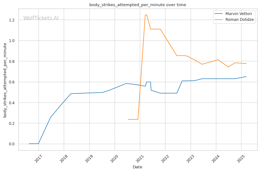 | Body Strikes Attempted per Minute | 0.650 | 0.768 | 1.065 | |
