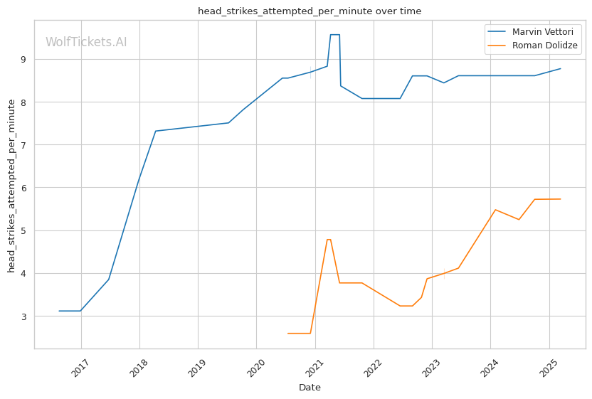 | Head Strikes Attempted per Minute | 8.771 | 5.731 | 5.862 | |