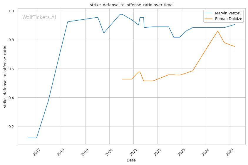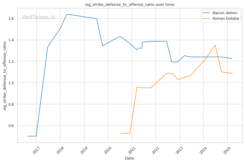 | Significant Striking Defense to Offense Ratio | 122.23% | 107.16% | 97.44% | |