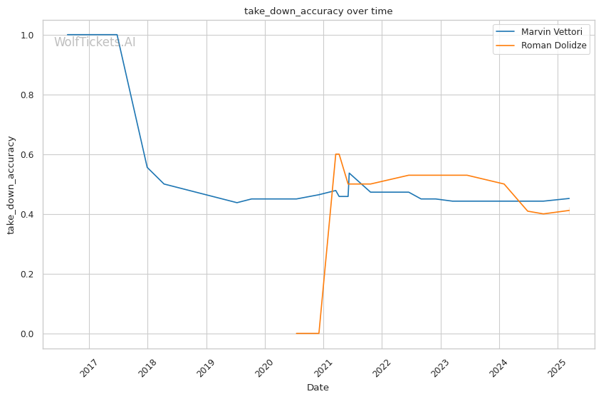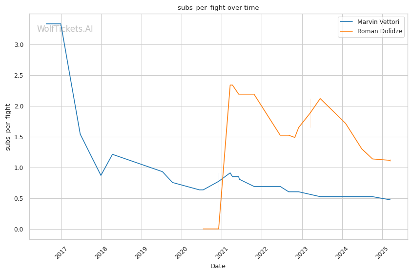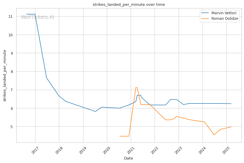 When these middleweights first clashed in March 2023, Vettori implemented a masterclass in pressure fighting. He neutralized Dolidze's dangerous grappling by controlling the clinch, securing timely takedowns, and maintaining relentless forward momentum. Dolidze struggled to implement his creative offense as Vettori simply wouldn't give him space to work. The fight went the distance with Vettori winning a clear unanimous decision by outworking Dolidze through consistent pressure and superior cardio.
