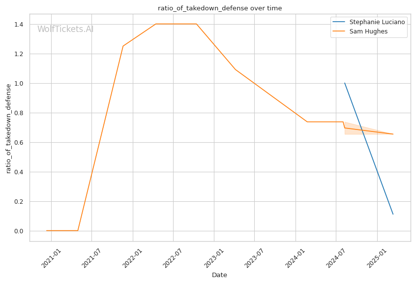 Technical Matchup: Hughes prefers to create scrambles after defending takedowns (as seen against Amorim), but Luciano's 83% takedown defense and counterstriking will make this approach difficult.