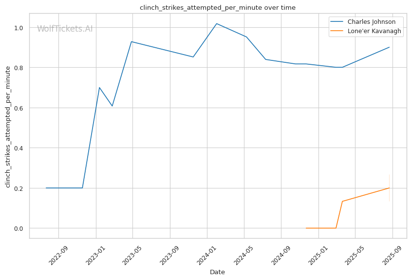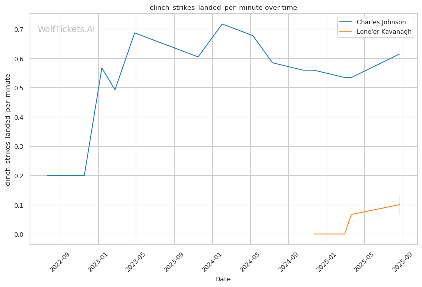 Mid-fight adjustments: As Johnson begins his characteristic surge, Kavanagh's knee strikes become more dangerous. Johnson's increased output means more kick attempts, creating more opportunities for Kavanagh to time clinch entries and land knees.