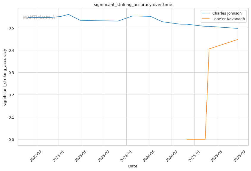 Early rounds: Kavanagh's aggressive striking approach matches perfectly with Johnson's slow-starting tendency. Johnson's limited first-round output allows Kavanagh to establish his southpaw jab and clinch entries without facing Johnson's typical late-fight pressure.