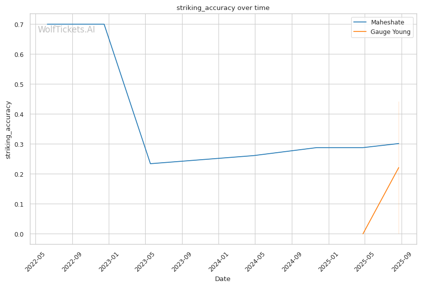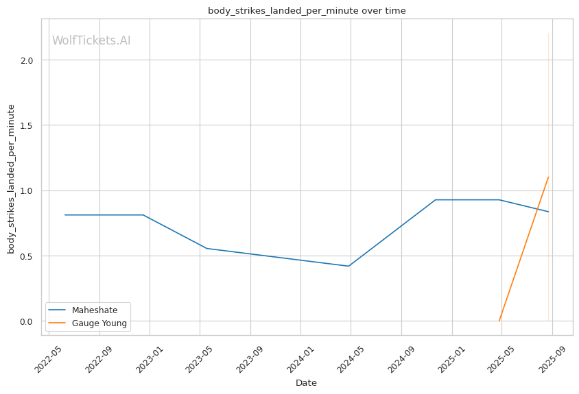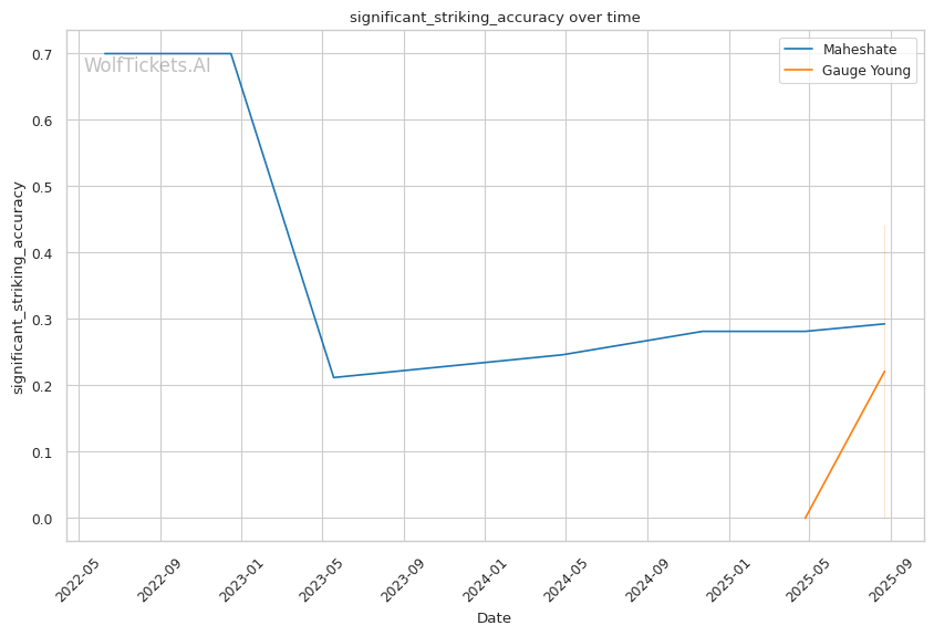 • Power vs Precision: Maheshate's knockout ability (0.56 KDs per fight) against Young's technical striking accuracy (44.3%) • Defensive Concerns: Both fighters show vulnerabilities—Maheshate to combinations when he loads up, Young to body shots and fence pressure • Wrestling Factor: Young's takedown threats (13 attempts vs Elder) could disrupt Maheshate's striking rhythm • Recent Form: Maheshate 1-2 in last three with declining defense, Young coming off decision loss but showed technical improvements