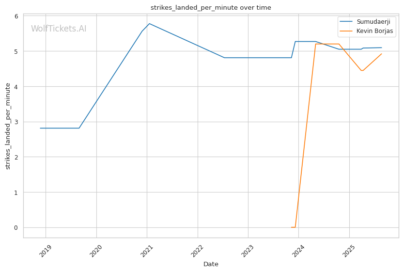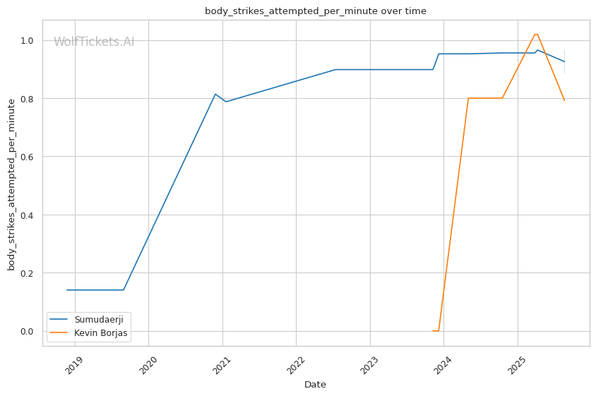 However, Borjas's recent performances reveal concerning trends. Against Alessandro Costa, he was stopped via strikes in round two, while Joshua Van outpointed him over three rounds. His striking accuracy has declined to 37% in recent fights, suggesting timing issues or opponent adjustments to his aggressive style.