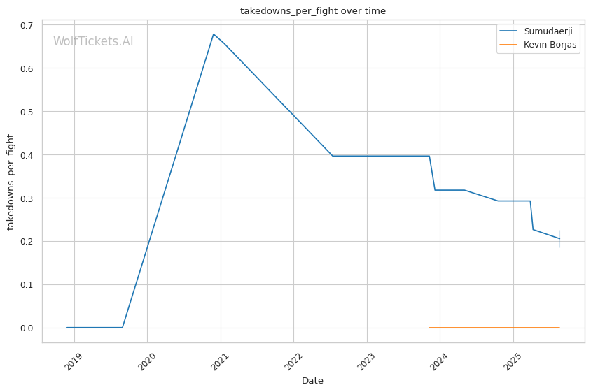 Sumudaerji's improved takedown defense neutralizes one of Borjas's potential advantages. While Borjas showed solid defensive wrestling against Rodriguez, his offensive grappling remains non-existent, eliminating the ground threat that has historically troubled Sumudaerji.