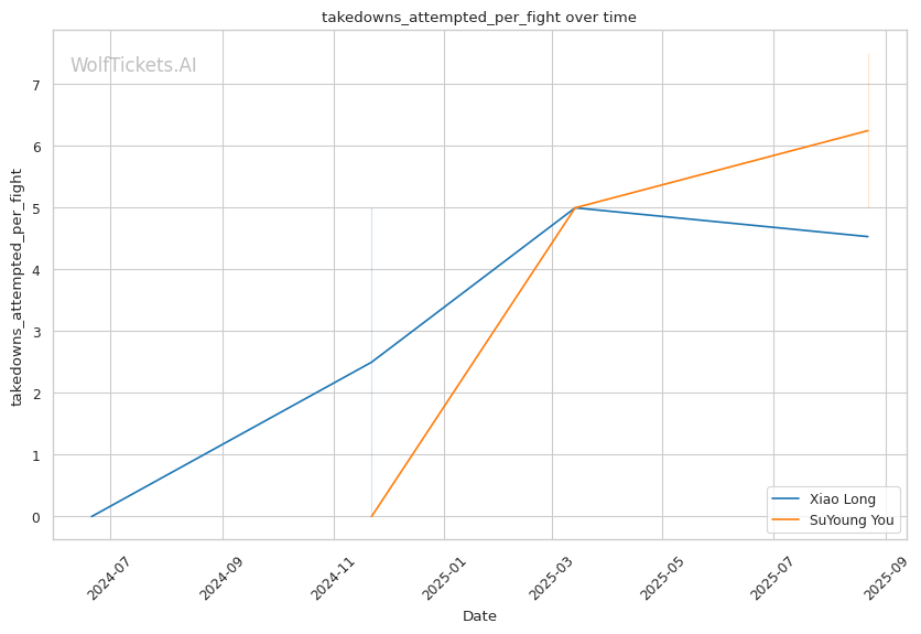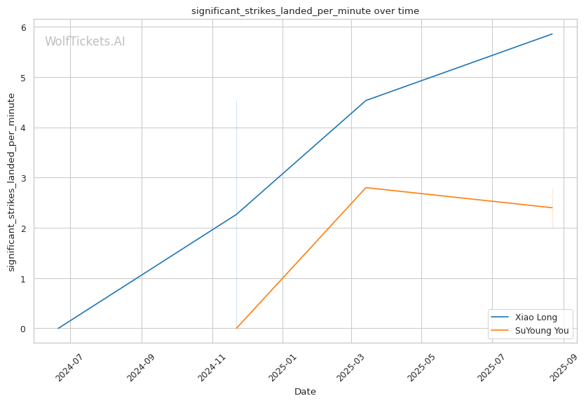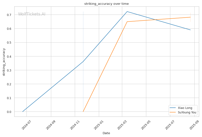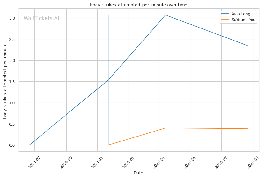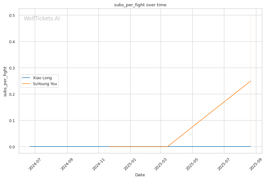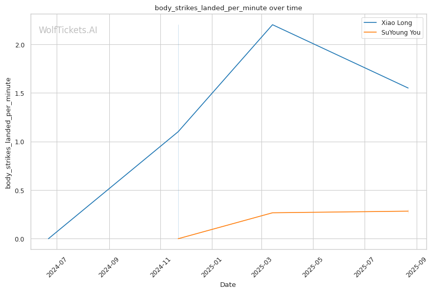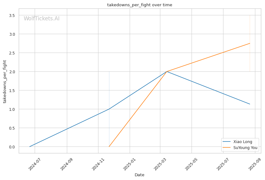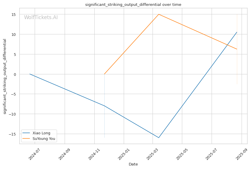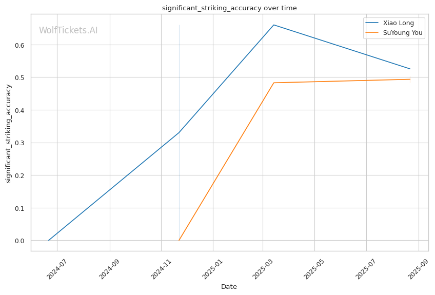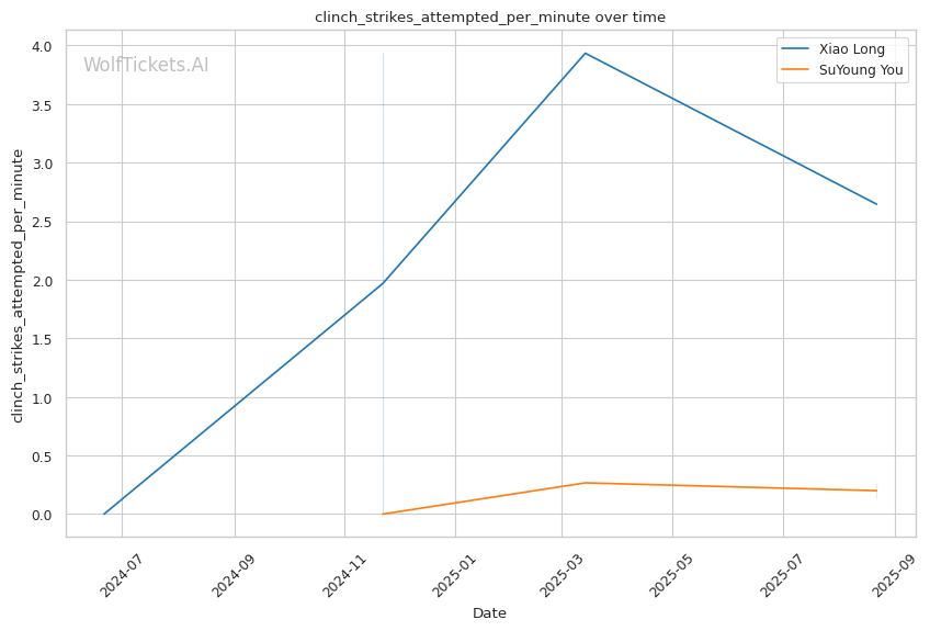 This matchup presents a fascinating clash between Long's aggressive pressure style and You's technical counter-striking approach. Long's tendency to engage in extended clinch exchanges plays directly into You's wheelhouse—his collar tie knee strikes and elbows could exploit Long's declining defensive metrics.