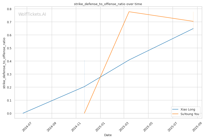 • Reach Advantage: You's 5-inch reach disadvantage is offset by his superior distance management through teep kicks • Defensive Disparity: You's 61.4% recent striking defense versus Long's 19% represents a massive technical gap • Clinch Battle: Long's clinch control meets You's elite collar tie game—advantage You based on finishing ability • Pressure vs Precision: Long's volume approach (5.86 sig strikes/min) versus You's accuracy (36.2% recent) favors technical execution