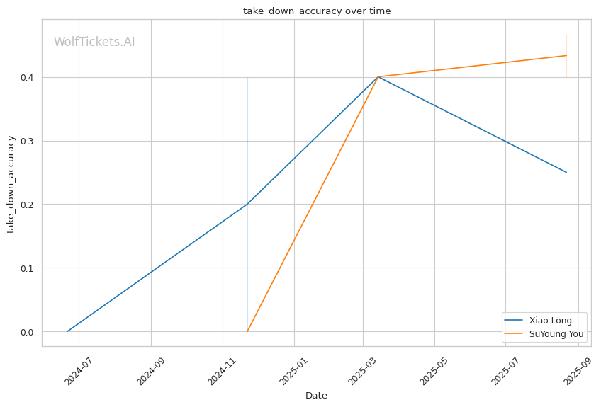 WolfTicketsAI correctly predicted Long's KO victory over Le with a 0.60 confidence score, demonstrating solid accuracy on Long's finishing ability. The model also successfully predicted You's unanimous decision over Cunningham with a strong 0.85 confidence score, showing excellent read on You's technical dominance. This perfect 2-0 record on both fighters provides strong validation for the current prediction.